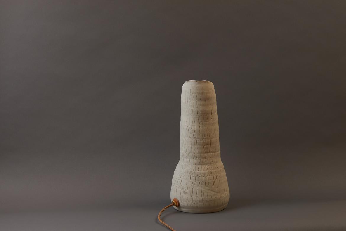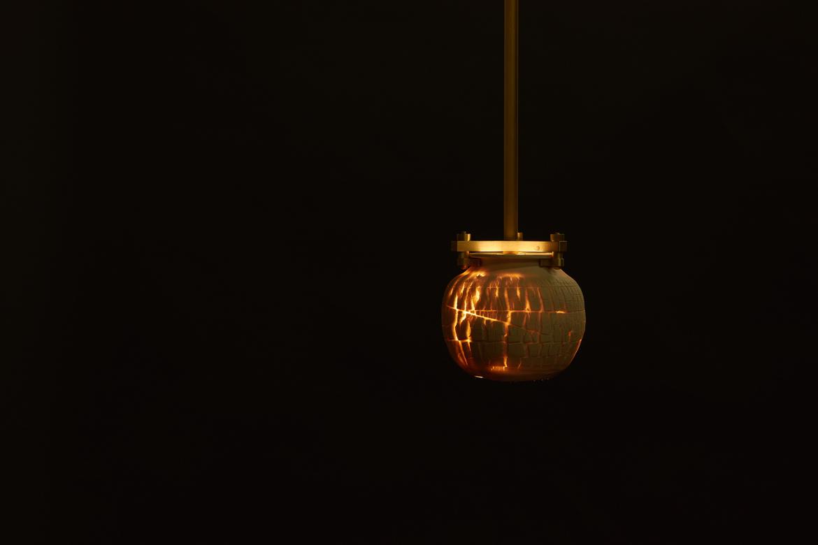 Inspired by the beauty of a dried-out desert lake bed, each piece is a handmade one-of-a-kind object that produces a mysterious quality when internally lit, embracing the flaws and accidents inherent in the craft and process of making: the series exemplifies the wabi-sabi ethos of acceptance of transience and imperfection.