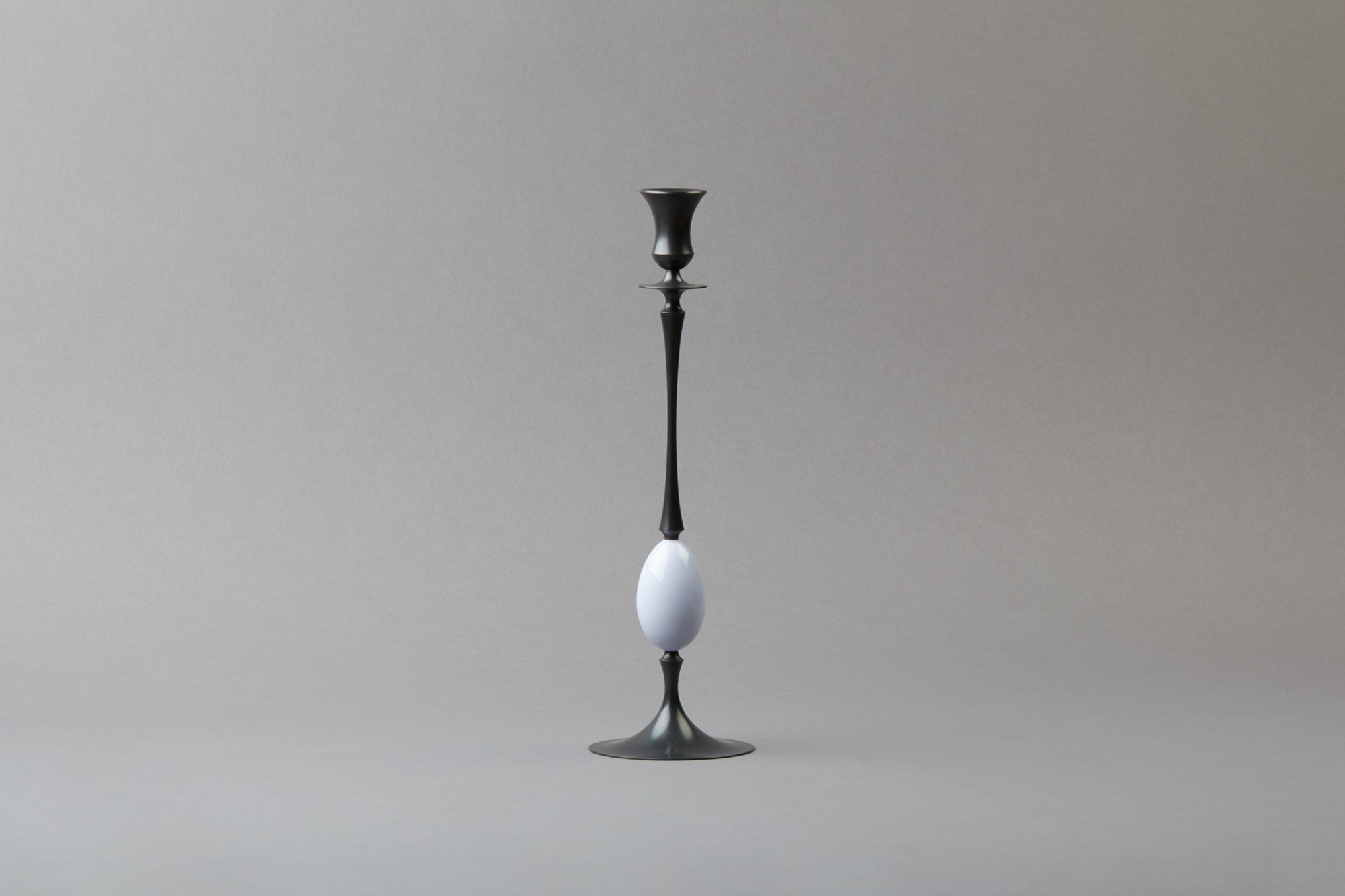 Intrigued by the classic but delicate shape of a Biedermeier candlestick found at a flea market, and impressed by the precision of nineteenth-century lathe work, he tried to capture these qualities using traditional spinning and casting techniques. Daunted, however, by the cost and labor required to realize them, the pieces remained as prototypes.